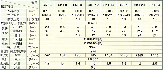 SKT系列跳汰機,可用于分選塊煤、未煤和不分級原煤。也可用于分選主洗機的中煤。